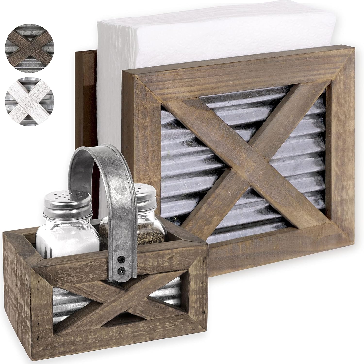 Introducing the Autumn Alley Farmhouse Napkin Holder and Adorable Farmhouse Salt and Pepper Shakers Set! This charming set is the perfect addition to any Western kitchen, with its rustic farmhouse design and durable galvanized metal construction.