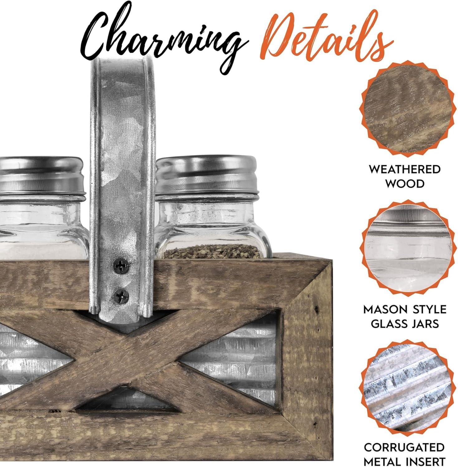 The Adorable Farmhouse Salt and Pepper Shakers Set features a cute design that will bring a smile to your face every time you use them. The set comes with a convenient wood holder to keep them neatly stored and easily within reach.