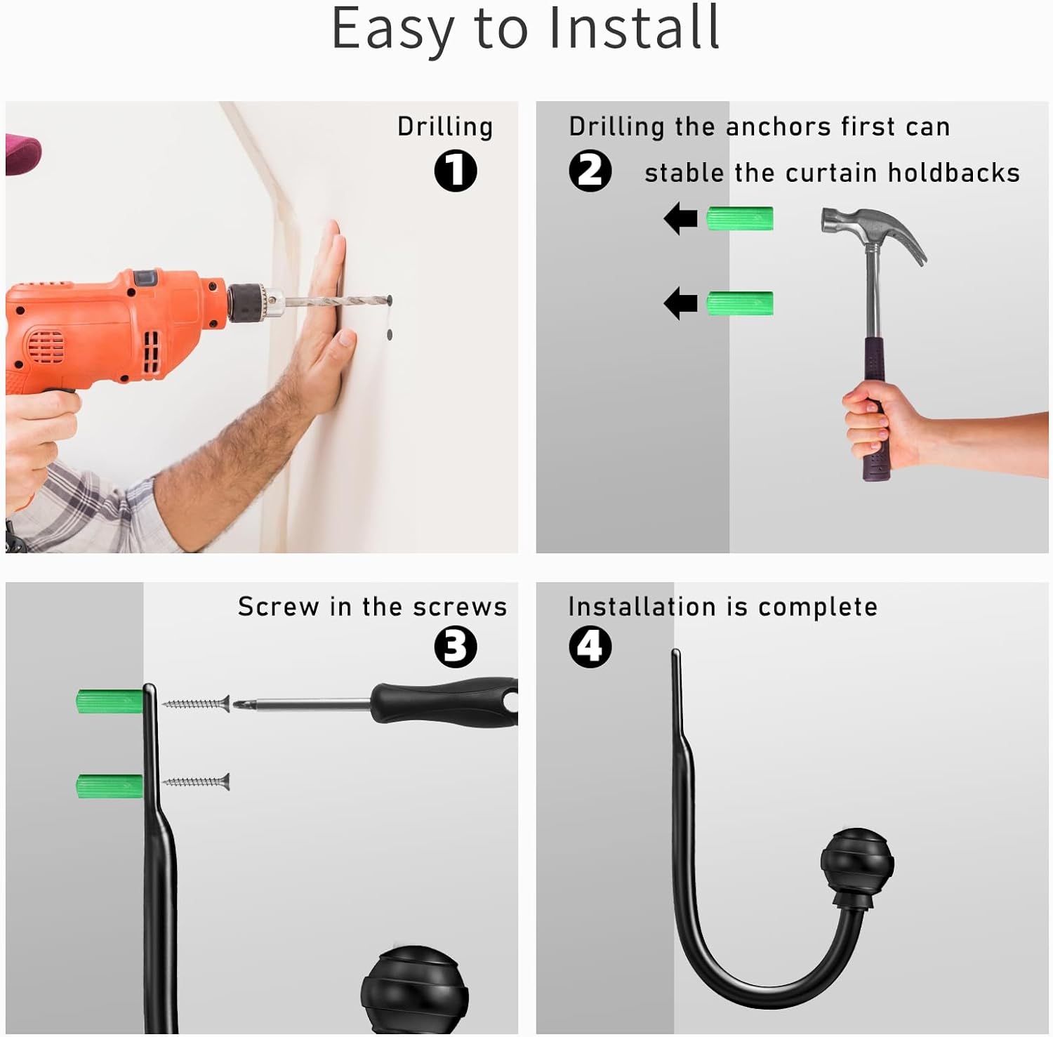 Constructed with durable materials, these wall-mounted curtain hooks are designed to securely hold even the heaviest drapes. Installation is a breeze, simply mount the holdbacks to the wall using the included hardware and enjoy the convenience of being able to easily pull back your curtains for a touch of added flair.